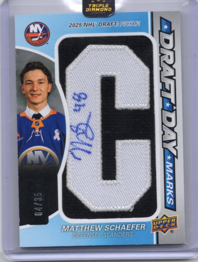 2025-26 SP Game Used Draft Day Marks RC Auto Patch Matthew Schaefer #DDM-MS Complete Nameplate