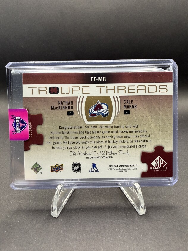Troupe Threads SP Game Used Dual Patches Mackinnon/Makar /25