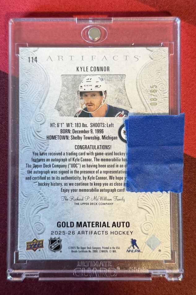 2025-26 Upper Deck Artifacts Kyle Connor Dual Patch Auto /65
