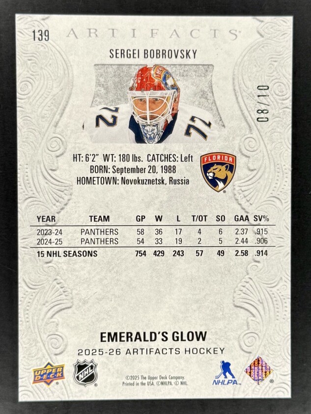 Beautiful Emerald Glow of Sergei Bobrovsky card 8 of 10