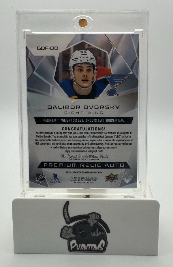 2025-26 Upper Deck Black Diamond Dalibor Dvorsky Diamond Futures Rookie Patch Auto /25