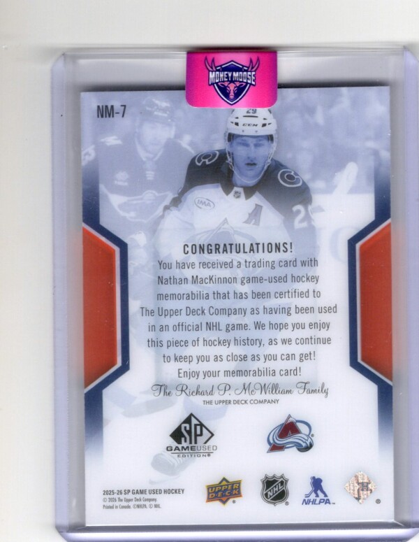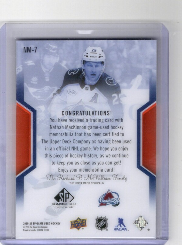 2025-26 Upper Deck SP Game Used Nathan MacKinnon NHL Masters Patch SSP #17/29 plus Jersey 52/199