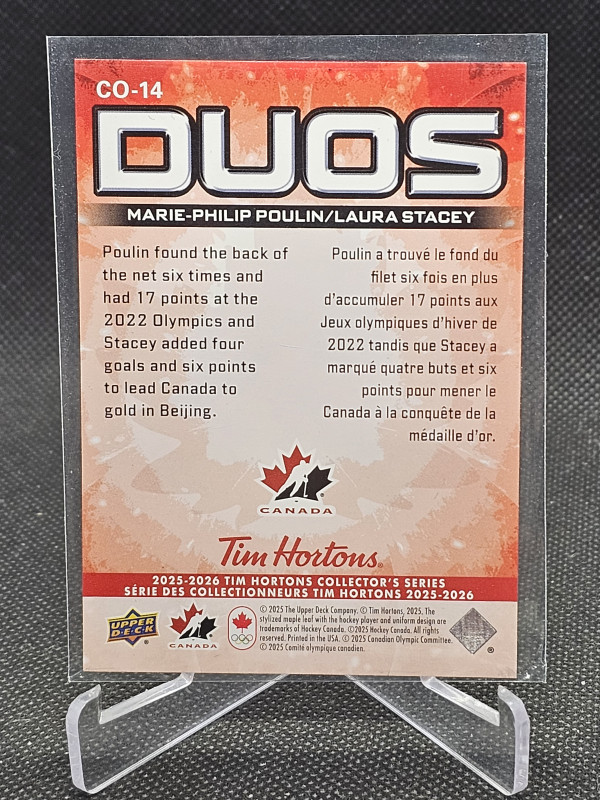 2025-26 Upper Deck Tim Hortons Team Canada Duos #CO14 Marie-Philip Poulin/Laura Stacey