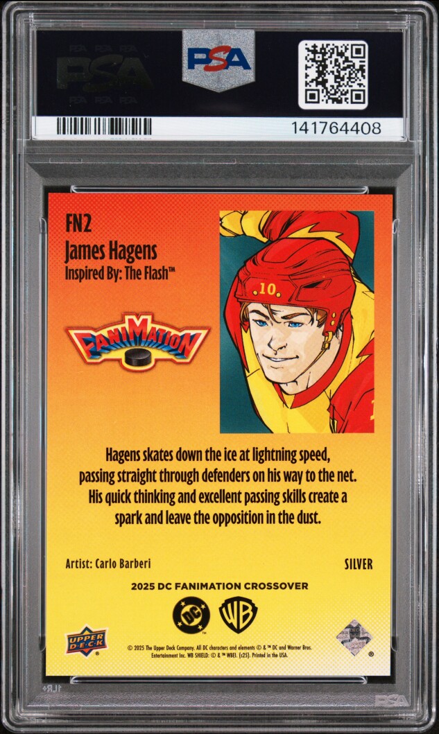 You are purchasing a 2025 Upper Deck DC X Fanimation Crossover James Hagens #FN2 Silver Rookie PSA 10. You will receive the exact item in the photographs. Thank you for looking.