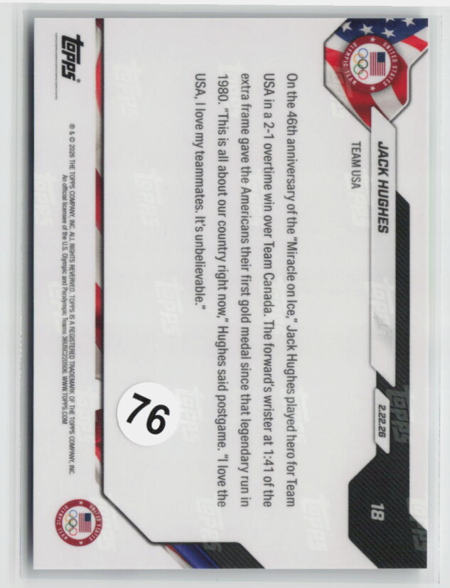 You are purchasing a 2026 Topps Now Jack Hughes #18 Excellent. You will receive the exact item in the photographs. Thank you for looking.