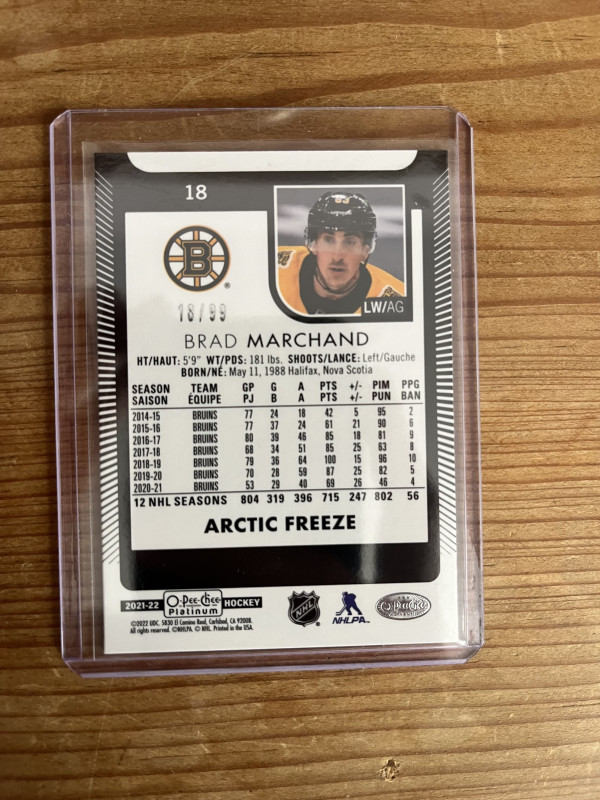21-22 O pee Chee platinum Brad Marchand arctic freeze /99