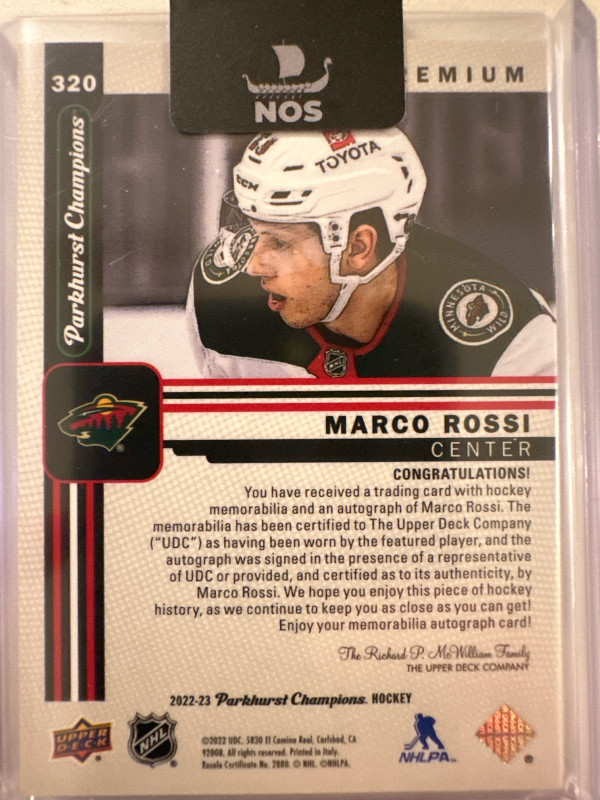 22-23 Parkhurst Champions Marco Rossi 3 colored patch auto 19/35