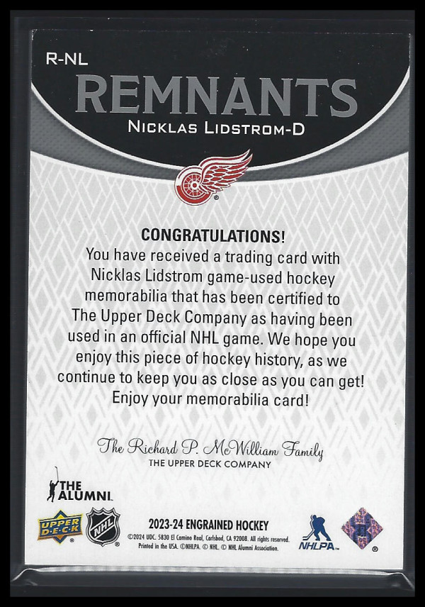 23-24 Engrained Nicklas Lidstrom Engrained Game Used Stick