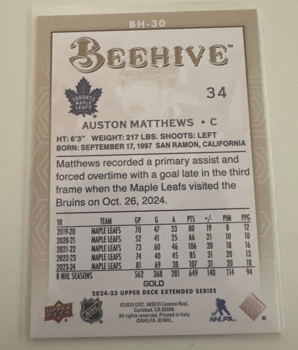24-25 Extended Series Auston Matthews Beehive Gold