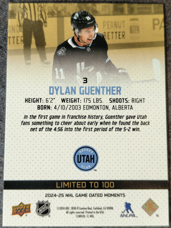 24-25 UD Game Dated Moments Dylan Guenther #3 Gold