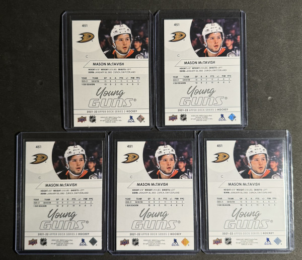 (5) 2021-22 Upper Deck 451 Mason McTavish Young Guns