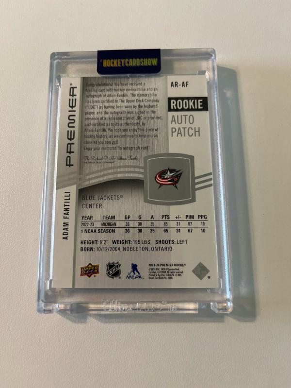 Adam Fantilli 2023-24 Premier Rookie Patch Auto #56/99