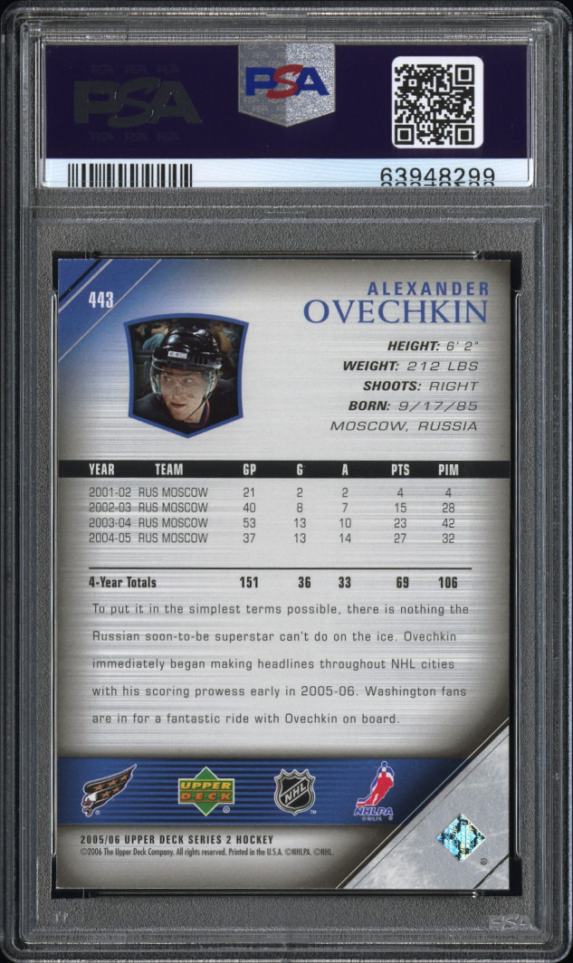 ALEXANDER OVECHKIN - 2005 Upper Deck Young Guns #443, PSA 9