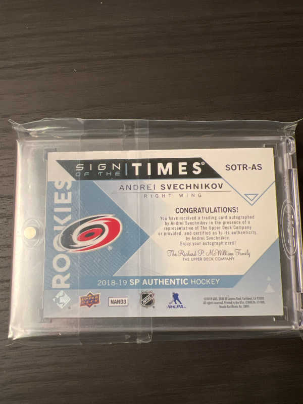 2018-19 SP Authentic Andrei Svechnikov Rookie Sign If The Times # 34/99