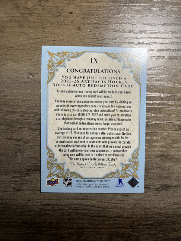 Artifacts rookie redemption auto! (IX)