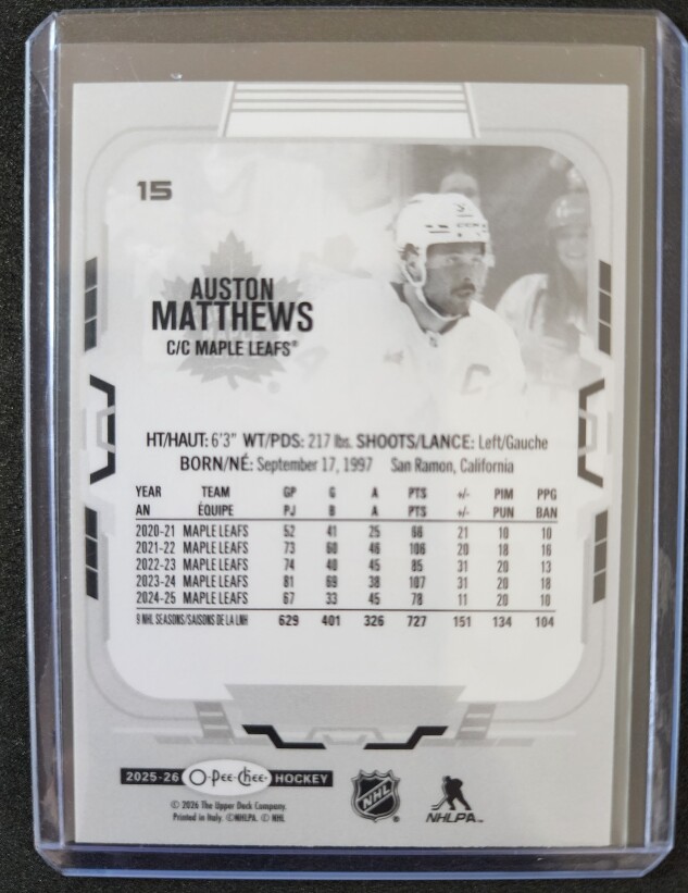 Auston Matthews Milestone Goal O-Pee-Chee Variant