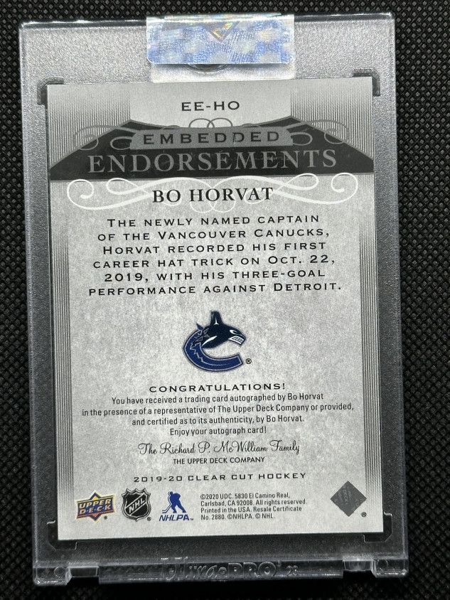 Bo Horvat 19/20 Clear Cut Embedded Endorsements