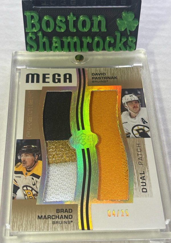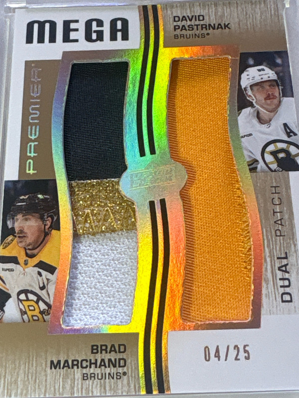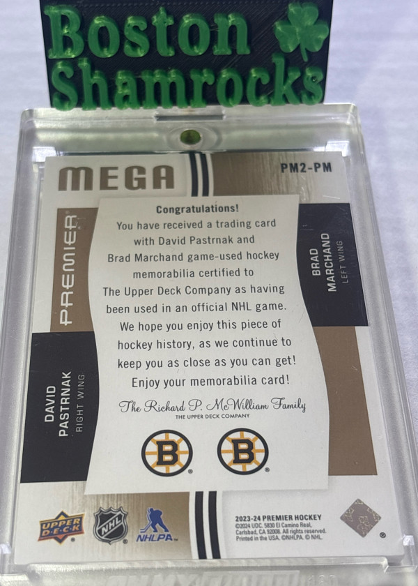 Brad Marchand David Pastrnak 2023-24 Upper Deck Premiere Mega Dual Game Used Jersey Patch Relics /25