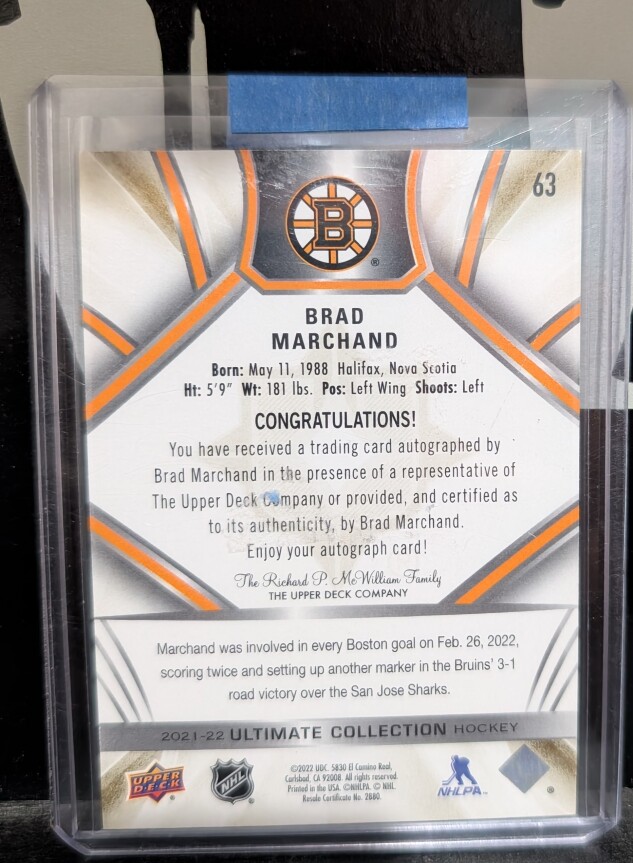 Brad Marchand Ultimate Collection Auto /35