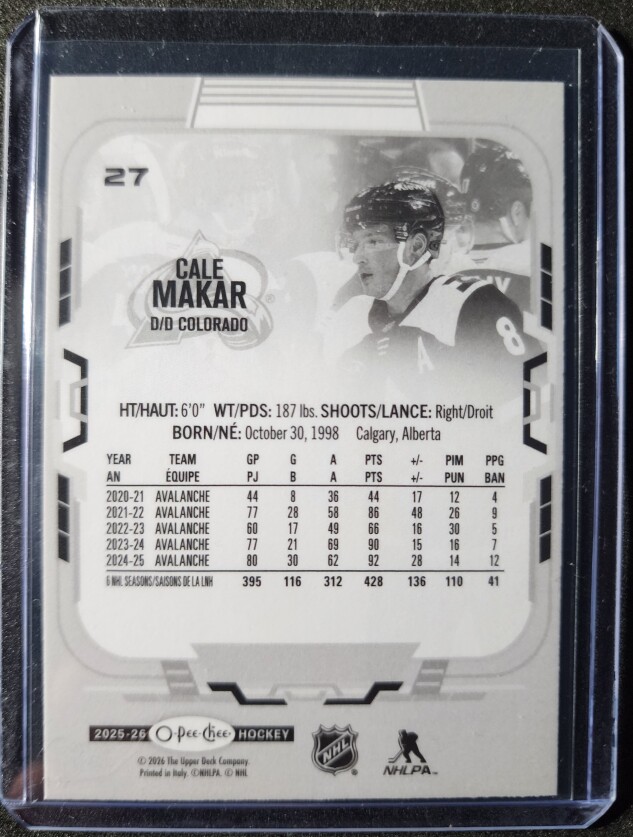 Cale Makar Variant 1:720 Milestone Goal O-Pee-Chee SP