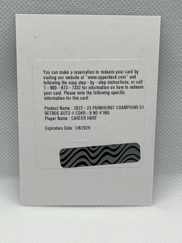 CARTER HART 2022-23 Parkhurst Champions ‘51 Retros Auto Redemption