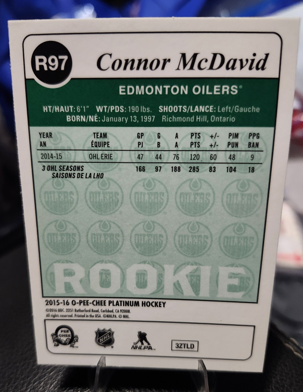 2015-16 O-PEE-CHEE CONNOR MCDAVID PLATINUM RETRO RC.