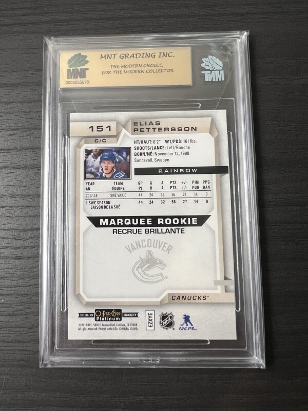 Elias Pettersson 2018-19 OPC Platinum Rookie Rainbow