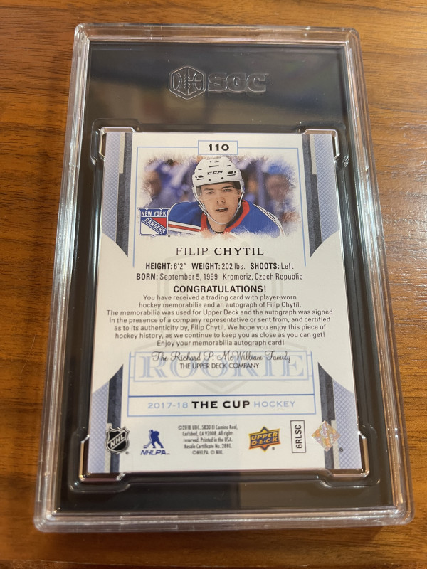 FILIP CHYTIL - 2017 The Cup Rookie Auto Patch #110, /249, SGC 10/9