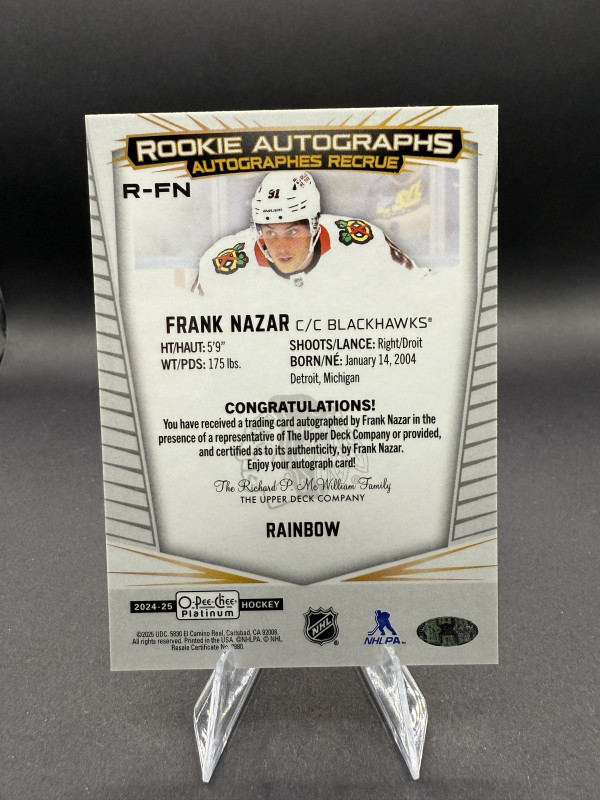 Frank Nazar Rainbow Rookie Auto from O Pee Chee Platinum 2024-25