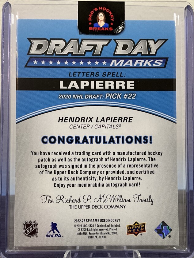 2022-23 SP Game Used Draft Day Marks 29/35