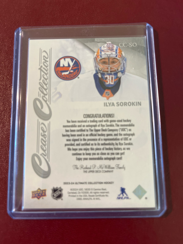 Ilya Sorokin 2023-24 Premier Crease Collections Patch Auto 46/49