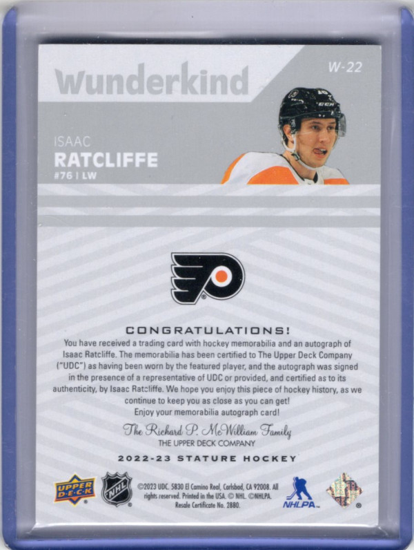 Isaac Ratcliffe 2022-23 UD Stature PATCH AUTO /24 Wunderkind #07/24 ROOKIE SP RC