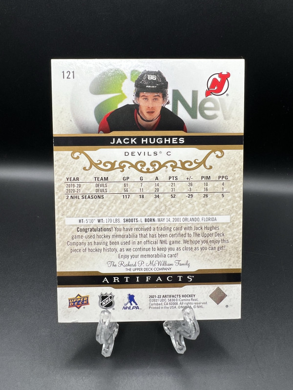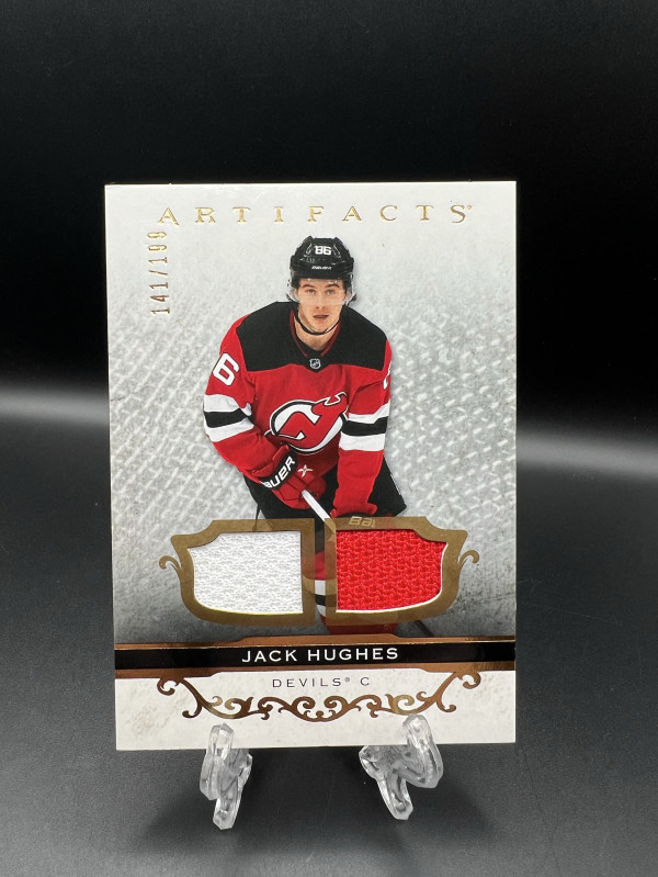 Jack Hughes Material Gold /199 Dual Game Used Jersey