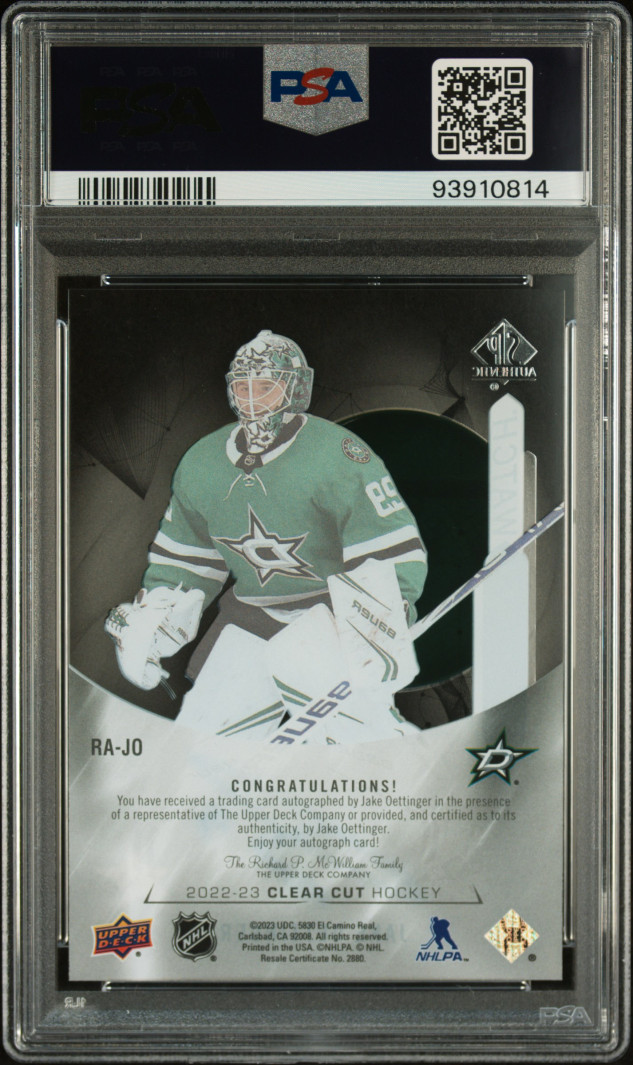 JAKE OETTINGER - 2022 Clear Cut Future Watch Tribute Auto #RA-JO, PSA 10
