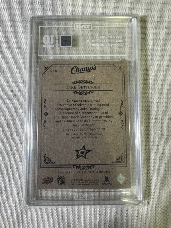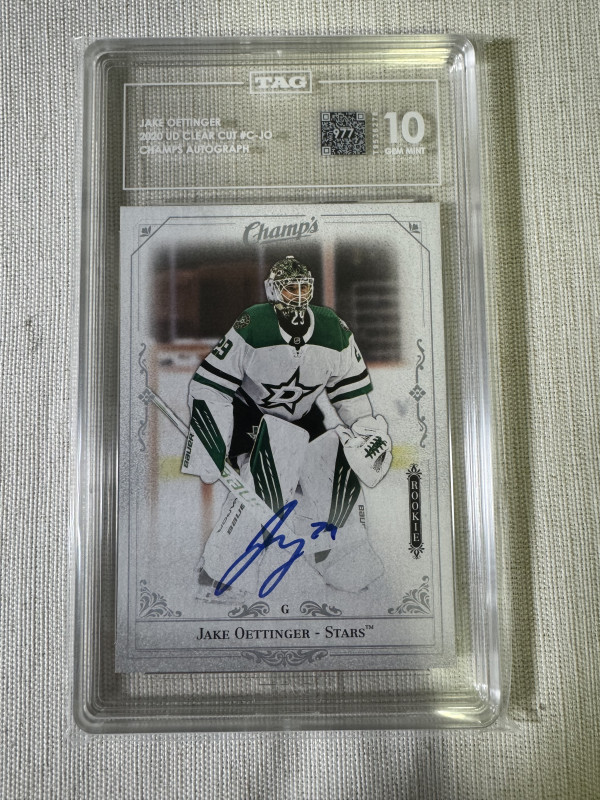 Jake Oettinger Rookie Champs Clear Cut Auto TAG 10
