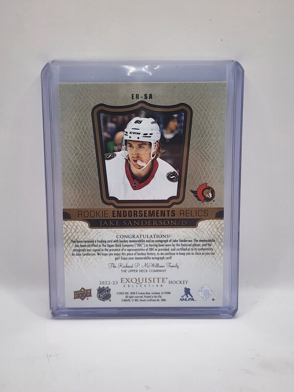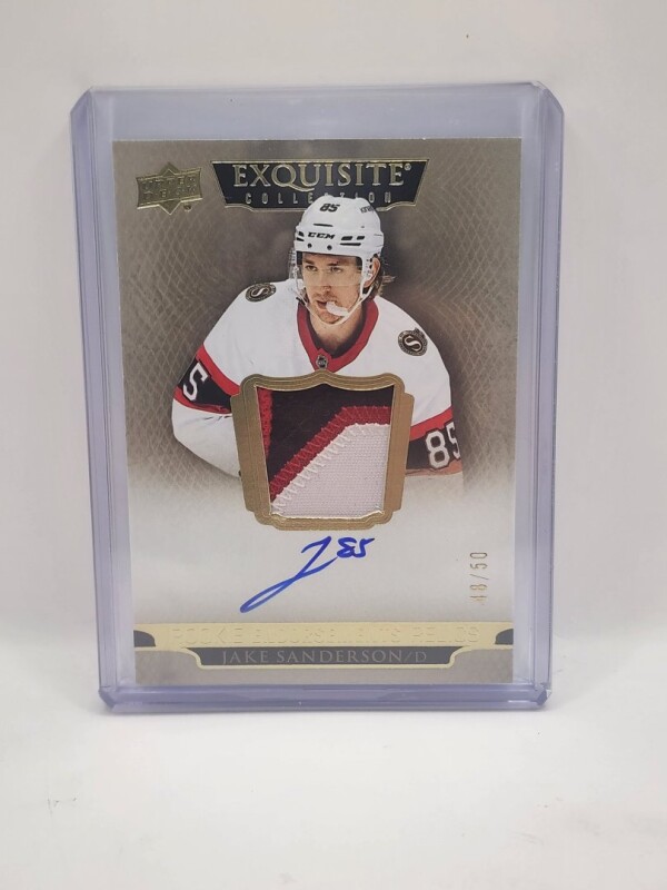 Thanks for your looking at my listing Jake Sanderson 2022-23 Upper Deck Exquisite Collection RC Auto Patch (3 Color) / 50. Let me know if you have any questions!