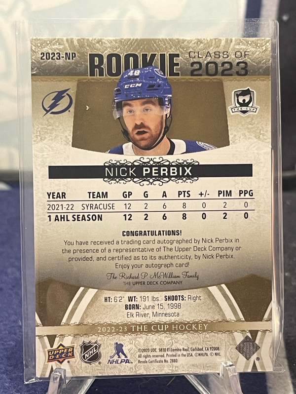 **Jersey Match** 2022 Upper Deck The Cup Rookie Class Of 2023 Gold Foil /50 Nick Perbix Auto RC