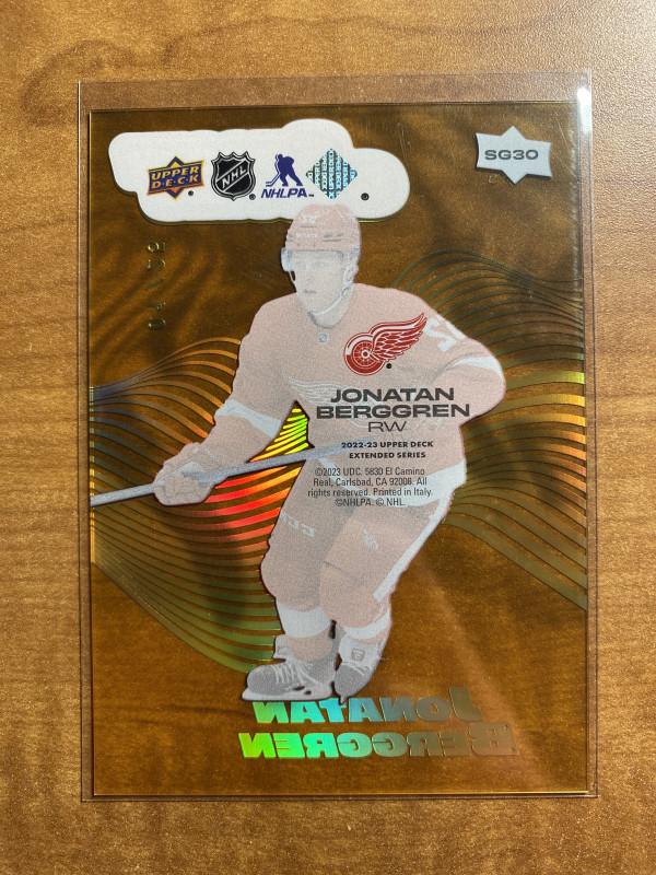 Jonatan Berggren 2022-23 Upper Deck Smooth Grooves Gold Insert /25 Red Wings