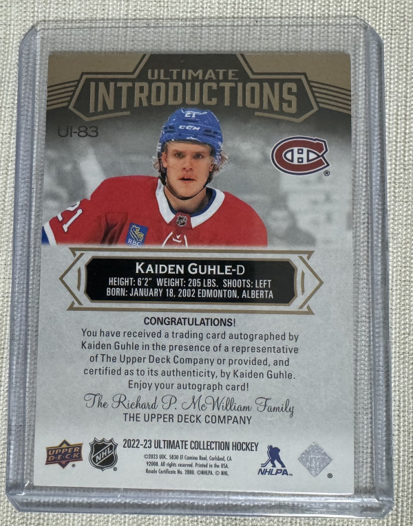 Kaiden Guhle Ultimate Introductions Rookie Auto /50