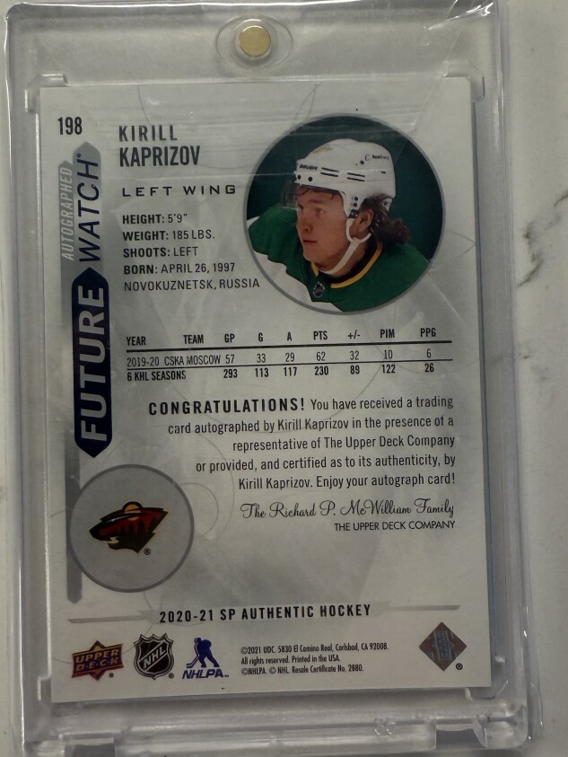 Kirill Kaprizov Future Watch Auto Inscribed /50