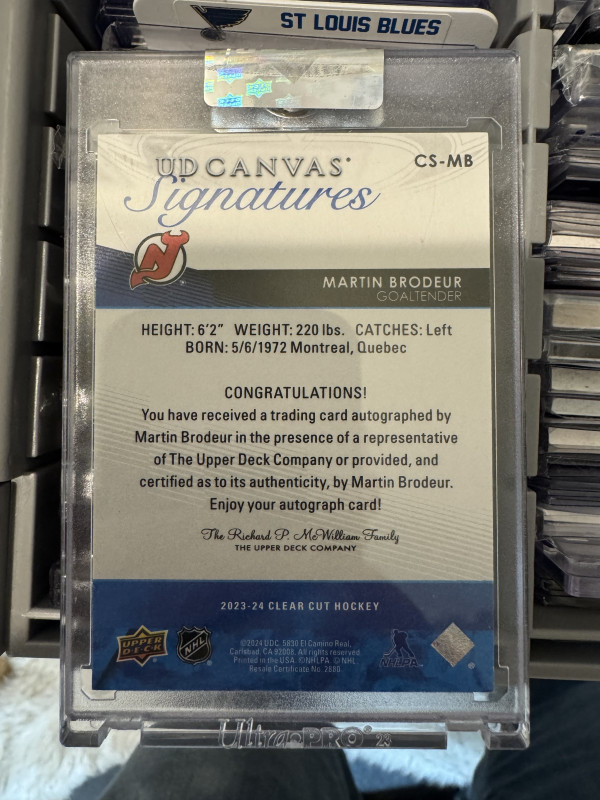 MARTIN BRODEUR - 2023 Upper Deck Clear Cut UD Canvas GOLD Auto #CS-MB, 1/1