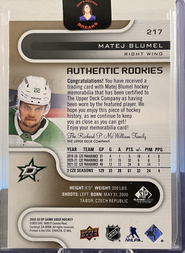 2022-23 SP Game Used Gold Authentic Rookies Patch Auto 08/15
