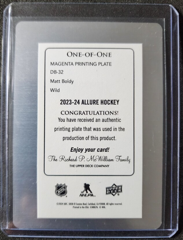 Matt Boldy 1 of 1 Allure Doubloons Printing Plate