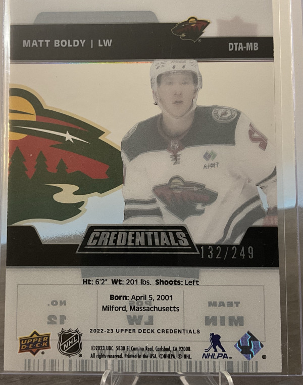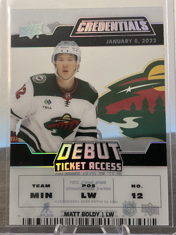 Matt Boldy Credentials Debut Ticket Access Acetate /249