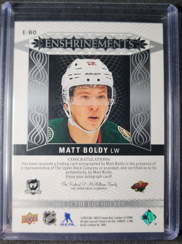Matt Boldy The Cup Enshrinements Auto /99 Rookie