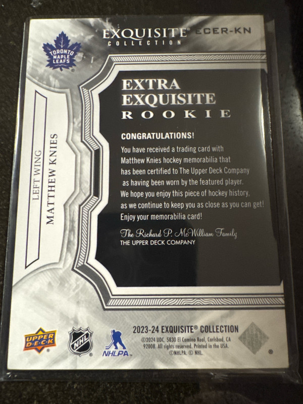 Matthew knies extra exquisite /10 rookie jumbo patch