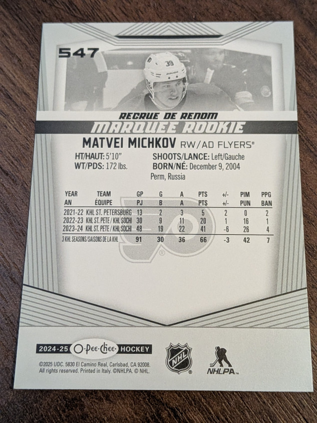 Matvei Michkov Marquee Rookie OPC 2024-25 o-pee-chee