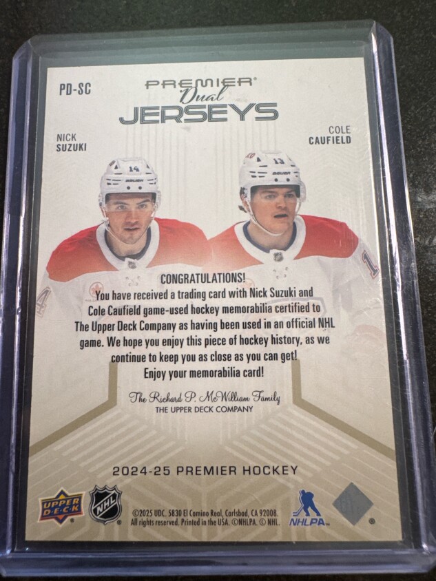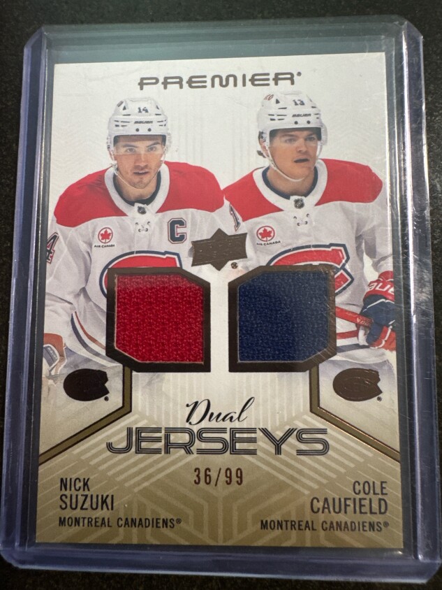 Nick Suzuki & Cole Caufield premier dual jerseys /99