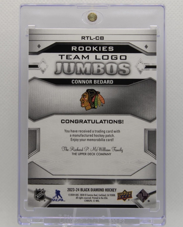 Onnor Bedard 2023-24 Upper Deck Black Diamond Rookie Team Logo Jumbos #RTL-CB