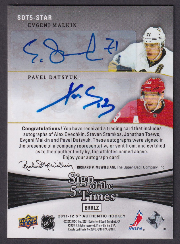 OVECHKIN / STAMKOS / TOEWS / MALKIN / DATSYUK - 2011 Sign of the Times, 3/8